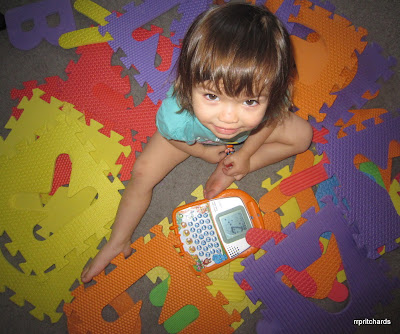 It's amazing how toddlers learn so fast, how they can quickly grasp new things and store it in their memory reservoir—the brain. My daughter just learned to identify each letter of the alphabet. She also knows what animal (mostly) represents a particular letter. I had been teaching her the ABCs, but not consistently. The teaching session was on and off. Sometimes once a week or none at all. We bought her a set of alphabet foam playmat because she likes to step on colorful things. With this learning tool, she does not only enjoy what she's doing, but also stimulates her mental learning skills. Unfortunately, she preferred to take off every piece of the puzzle and put them back together. She likes to tinker things, so after we laid and connected the puzzle on the floor, she got so busy taking the puzzles apart and fasten them back together. I decided to just put the puzzle in a box but didn't put them away just in case she wants to play with them, it's within her reach. Whenever I remember, I'd take out every letter from the box and ask her what I have in my hand. Some she knew, some didn't.